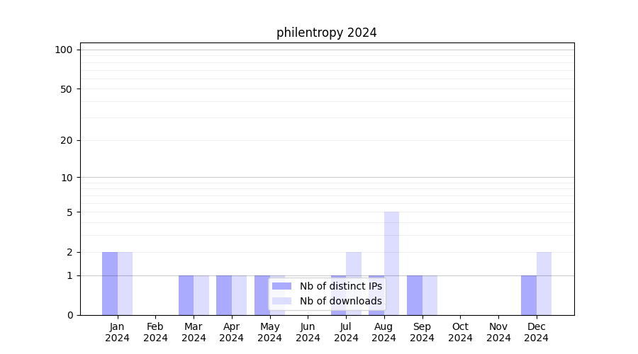 Number of downloads for software package philentropy, year by year, from 2025 back to 2014 (years with no downloads are omitted):