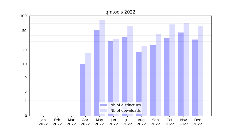 Number of downloads for software package qmtools, year by year, from 2025 back to 2014 (years with no downloads are omitted):