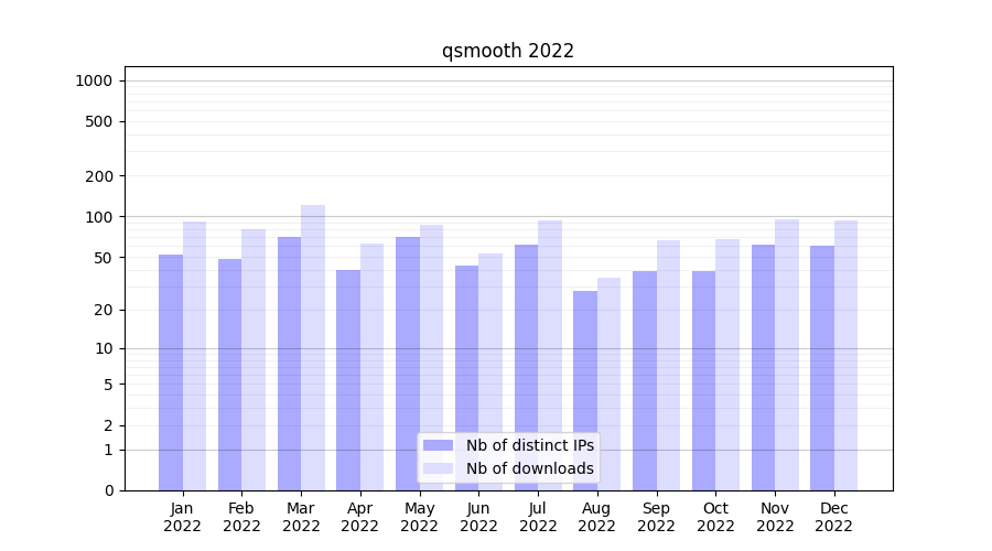 Number of downloads for software package qsmooth, year by year, from 2025 back to 2014 (years with no downloads are omitted):