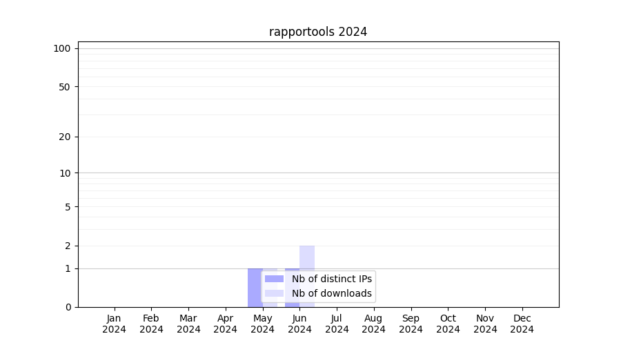 Number of downloads for software package rapportools, year by year, from 2025 back to 2014 (years with no downloads are omitted):
