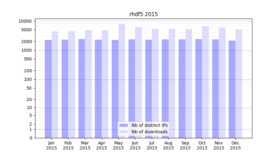 Number of downloads for software package rhdf5, year by year, from 2025 back to 2014 (years with no downloads are omitted):