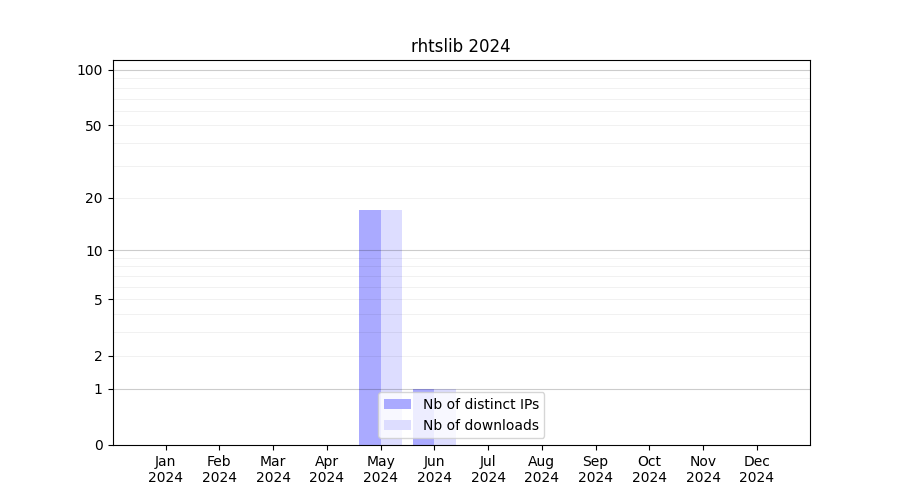 Number of downloads for software package rhtslib, year by year, from 2025 back to 2014 (years with no downloads are omitted):