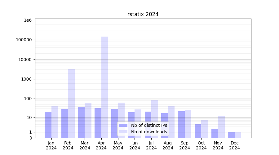 | Month | Nb of distinct IPs | Nb of downloads |