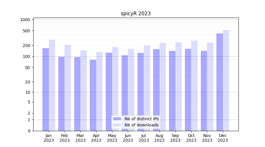 Download stats for software package spicyR