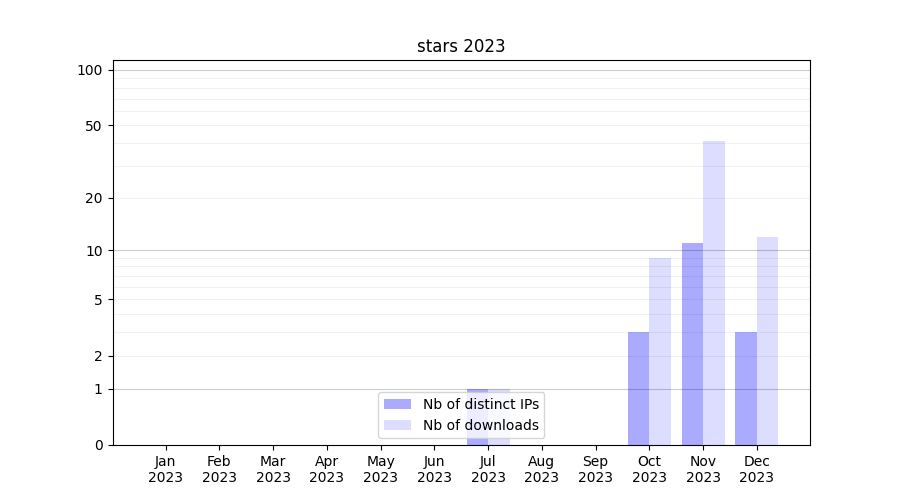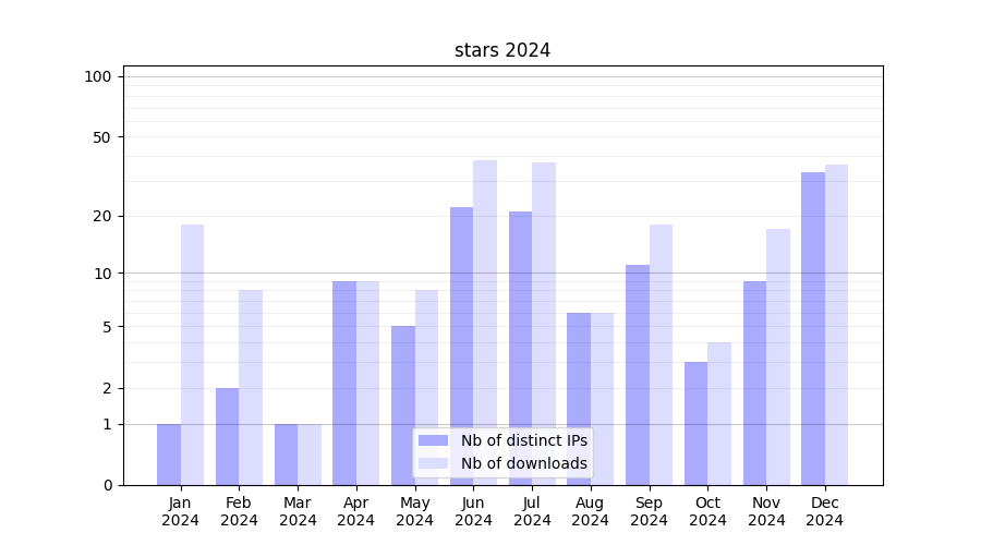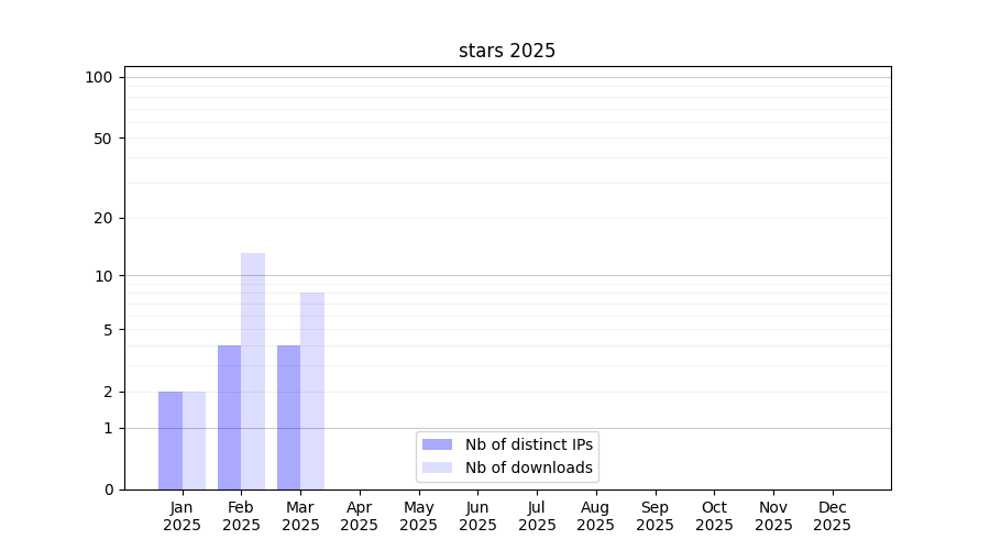 Number of downloads for software package stars, year by year, from 2025 back to 2014 (years with no downloads are omitted):