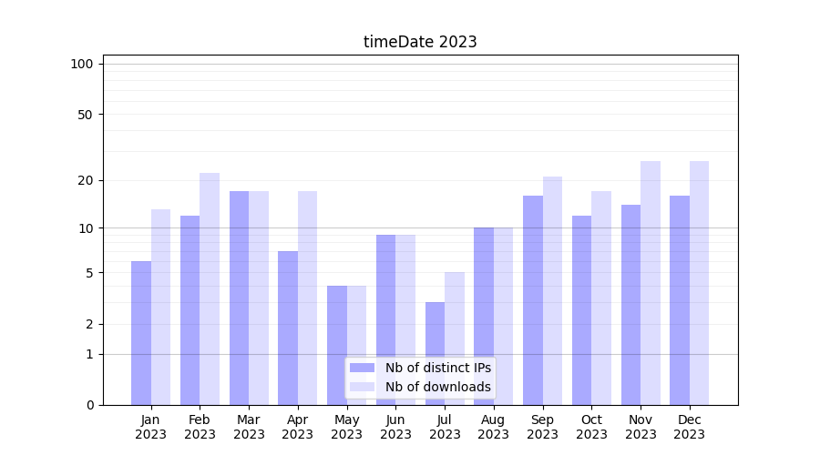 | Month | Nb of distinct IPs | Nb of downloads |