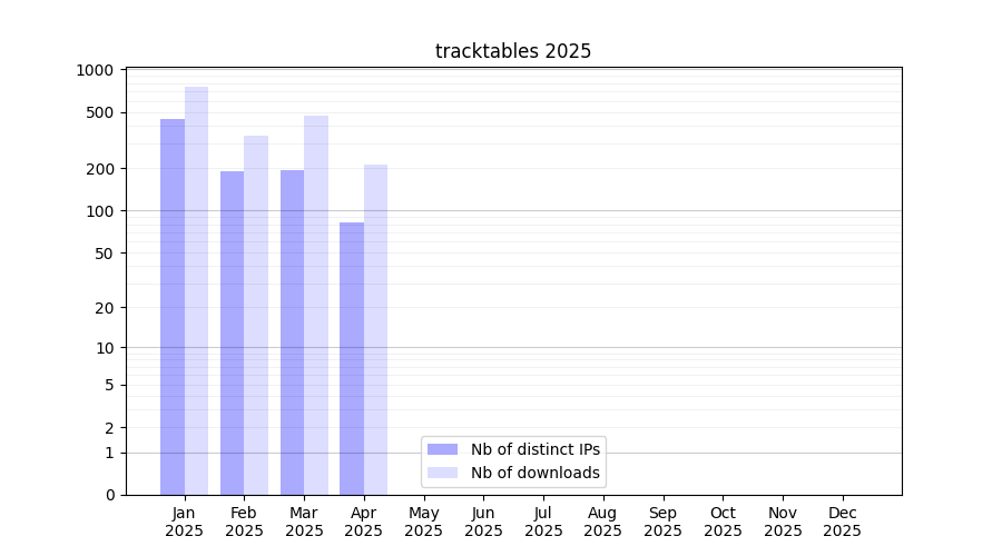 | Month | Nb of distinct IPs | Nb of downloads |