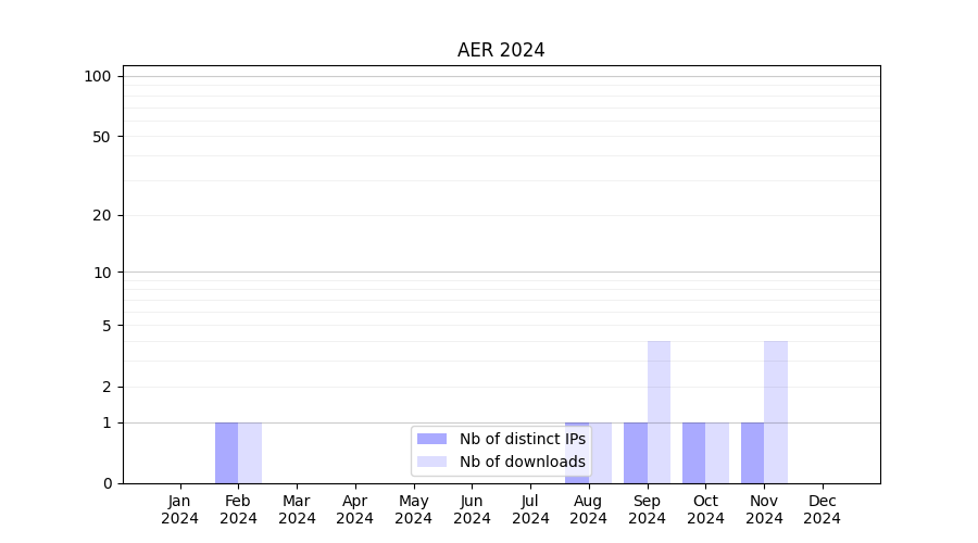 Number of downloads for annotation package AER, year by year, from 2025 back to 2014 (years with no downloads are omitted):