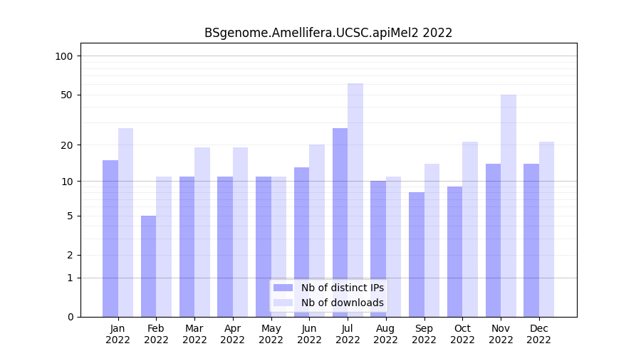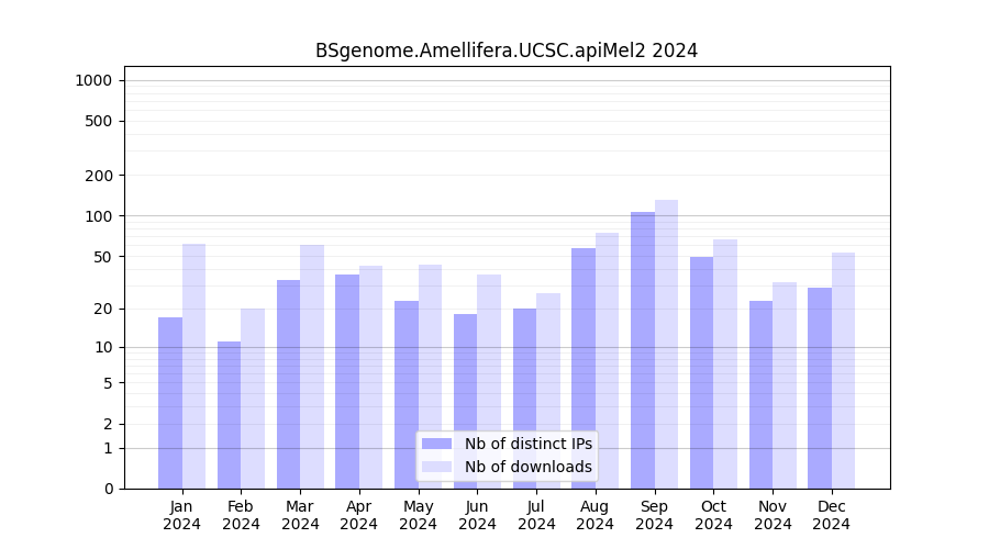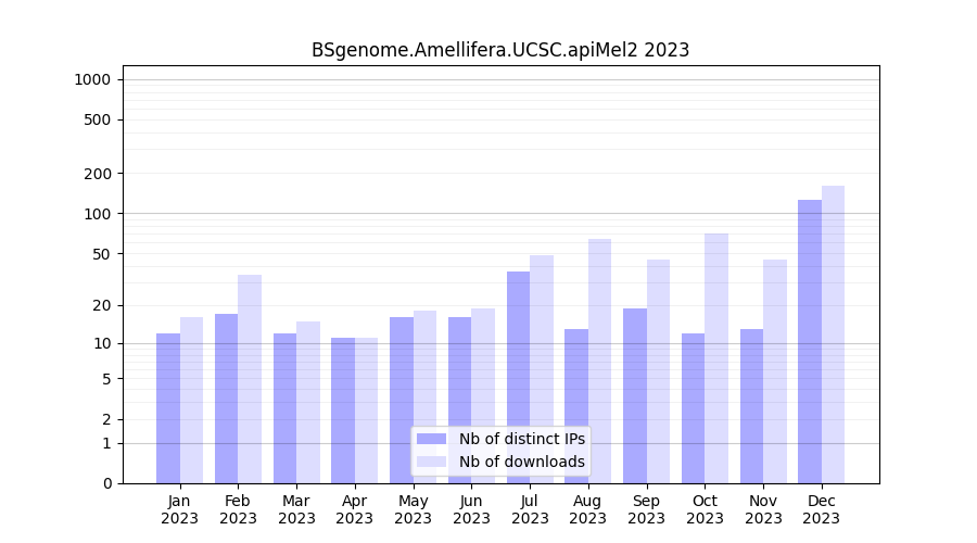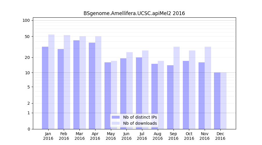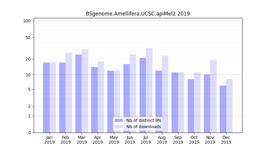Download stats for annotation package BSgenome.Amellifera.UCSC.apiMel2