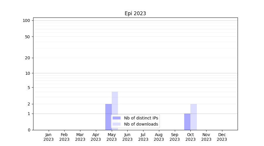 Number of downloads for annotation package Epi, year by year, from 2025 back to 2014 (years with no downloads are omitted):