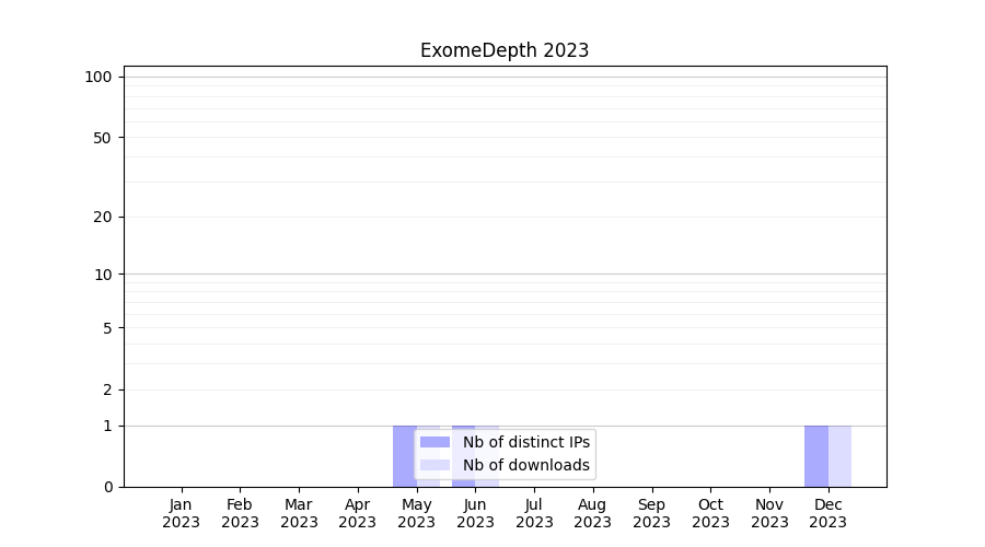 Number of downloads for annotation package ExomeDepth, year by year, from 2025 back to 2014 (years with no downloads are omitted):