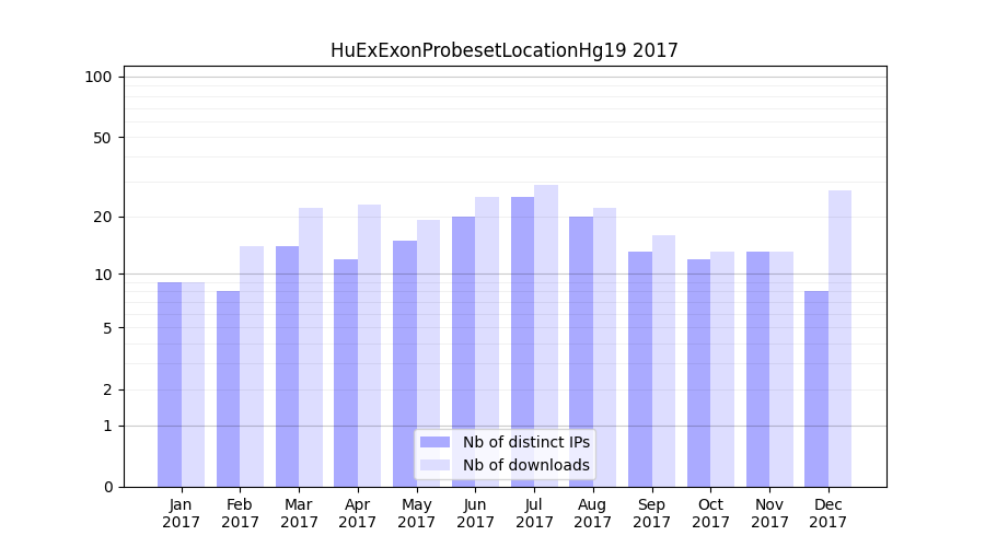 Download stats for annotation package HuExExonProbesetLocationHg19