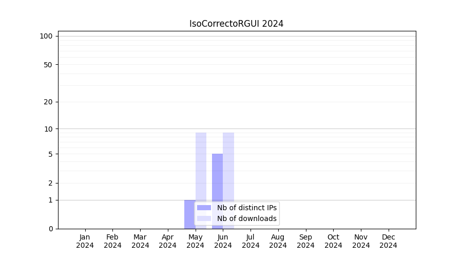Number of downloads for annotation package IsoCorrectoRGUI, year by year, from 2025 back to 2014 (years with no downloads are omitted):