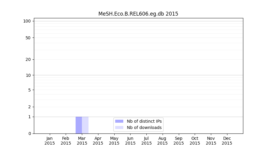 Number of downloads for annotation package MeSH.Eco.B.REL606.eg.db, year by year, from 2025 back to 2014 (years with no downloads are omitted):