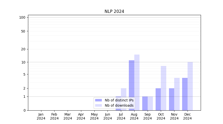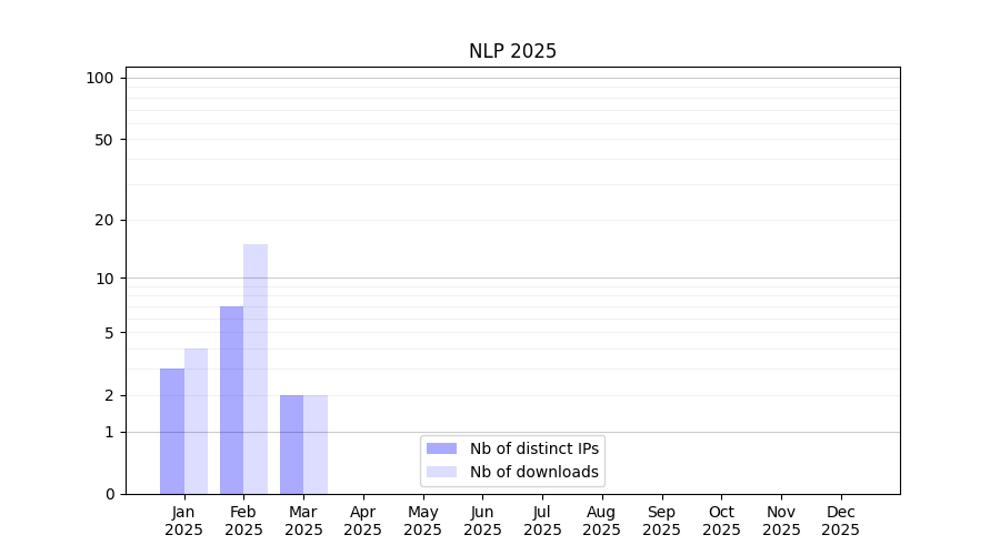 Number of downloads for annotation package NLP, year by year, from 2025 back to 2014 (years with no downloads are omitted):