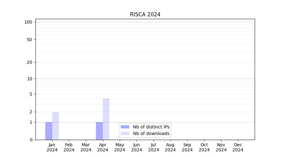 Number of downloads for annotation package RISCA, year by year, from 2025 back to 2014 (years with no downloads are omitted):