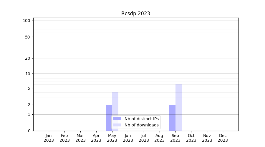 Number of downloads for annotation package Rcsdp, year by year, from 2025 back to 2014 (years with no downloads are omitted):