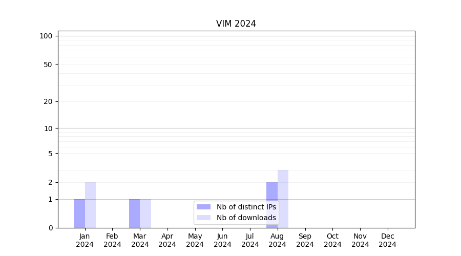Number of downloads for annotation package VIM, year by year, from 2025 back to 2014 (years with no downloads are omitted):