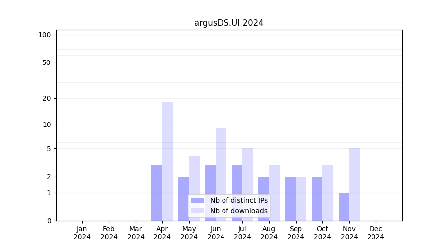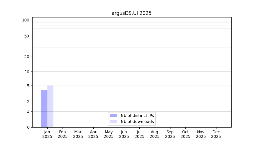 Number of downloads for annotation package argusDS.UI, year by year, from 2025 back to 2014 (years with no downloads are omitted):