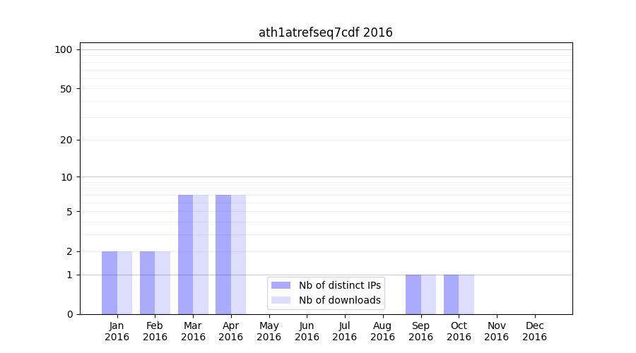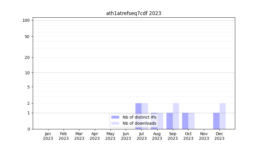 Number of downloads for annotation package ath1atrefseq7cdf, year by year, from 2025 back to 2014 (years with no downloads are omitted):