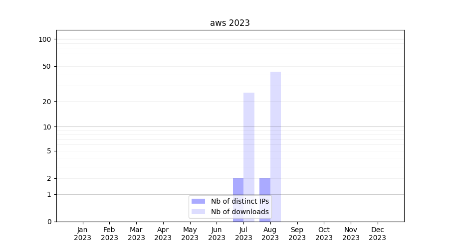 Number of downloads for annotation package aws, year by year, from 2025 back to 2014 (years with no downloads are omitted):