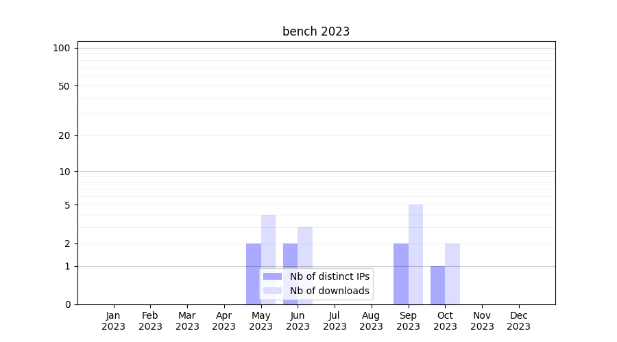 Number of downloads for annotation package bench, year by year, from 2025 back to 2014 (years with no downloads are omitted):
