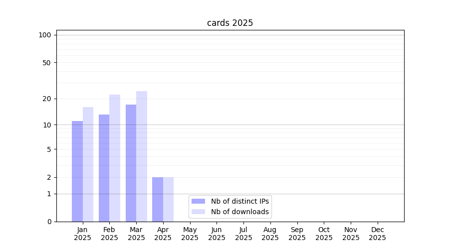 Number of downloads for annotation package cards, year by year, from 2025 back to 2014 (years with no downloads are omitted):