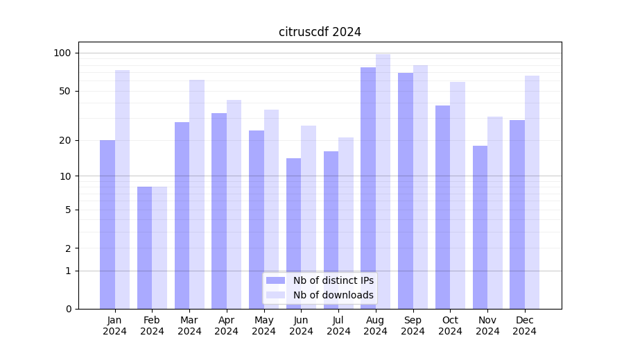 | Month | Nb of distinct IPs | Nb of downloads |