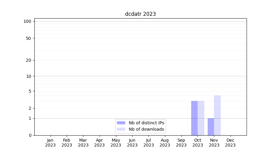 Number of downloads for annotation package dcdatr, year by year, from 2025 back to 2014 (years with no downloads are omitted):