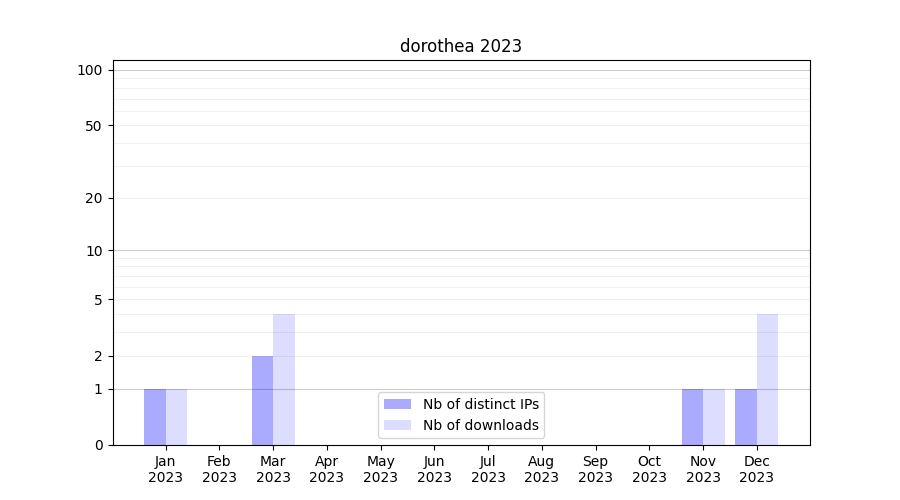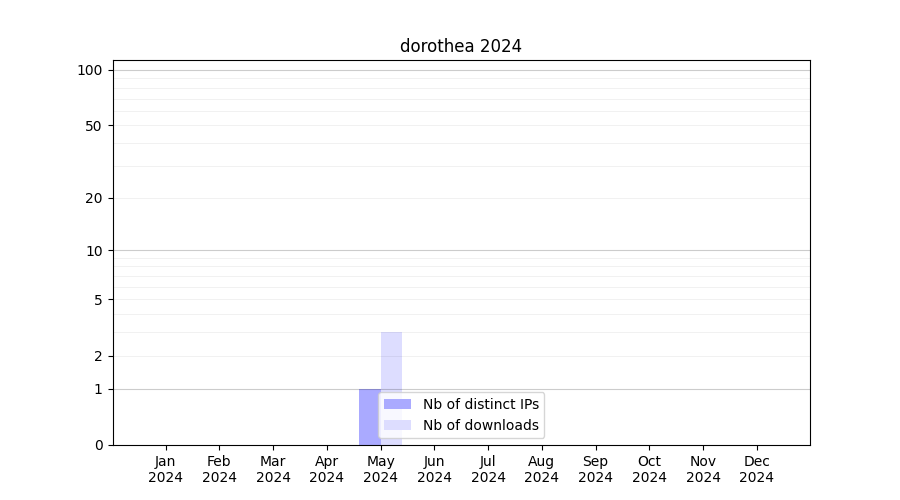 Number of downloads for annotation package dorothea, year by year, from 2025 back to 2014 (years with no downloads are omitted):
