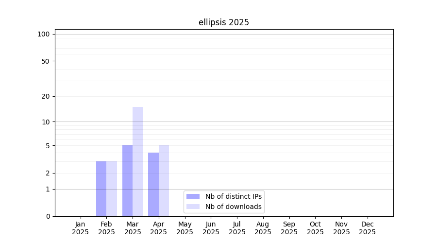 Number of downloads for annotation package ellipsis, year by year, from 2025 back to 2014 (years with no downloads are omitted):