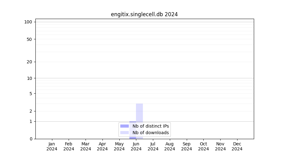 Number of downloads for annotation package engitix.singlecell.db, year by year, from 2025 back to 2014 (years with no downloads are omitted):