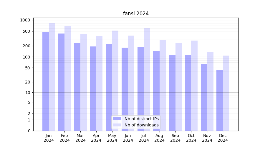| Month | Nb of distinct IPs | Nb of downloads |