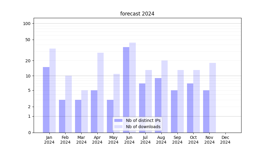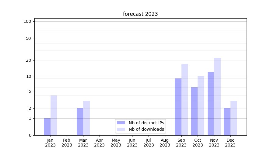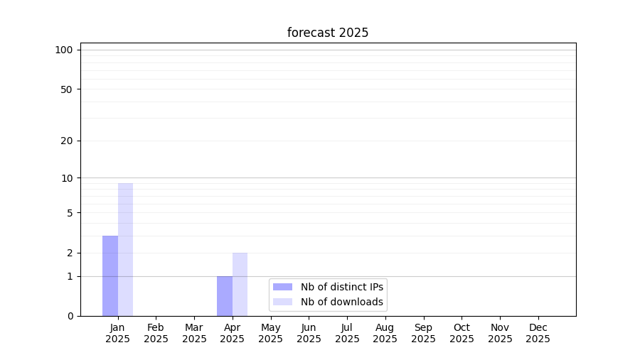 Number of downloads for annotation package forecast, year by year, from 2025 back to 2014 (years with no downloads are omitted):