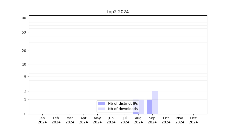 Number of downloads for annotation package fpp2, year by year, from 2025 back to 2014 (years with no downloads are omitted):