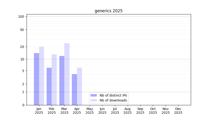 Number of downloads for annotation package generics, year by year, from 2025 back to 2014 (years with no downloads are omitted):