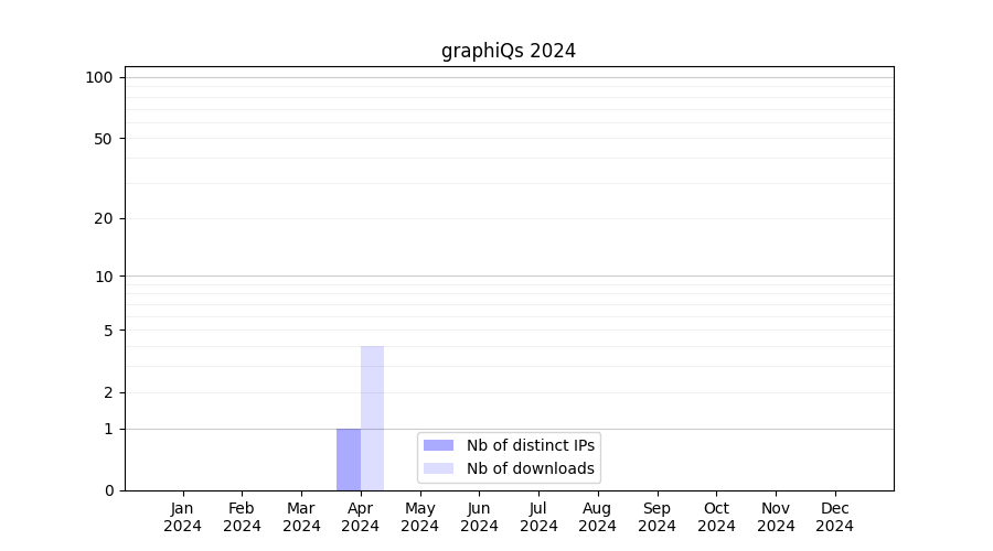 Number of downloads for annotation package graphiQs, year by year, from 2025 back to 2014 (years with no downloads are omitted):