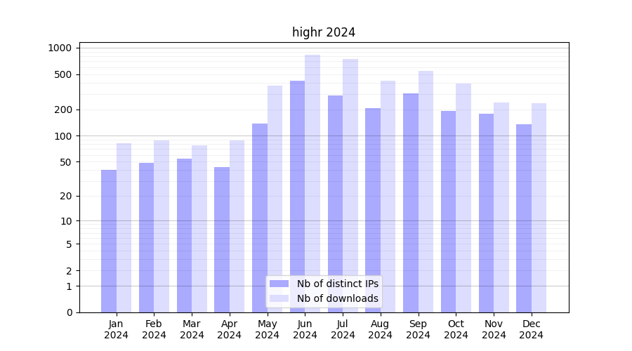 | Month | Nb of distinct IPs | Nb of downloads |