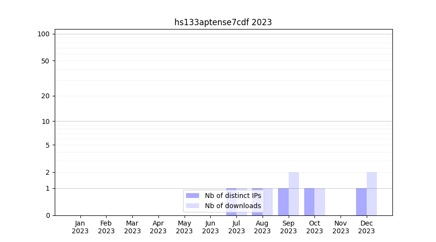 Number of downloads for annotation package hs133aptense7cdf, year by year, from 2025 back to 2014 (years with no downloads are omitted):