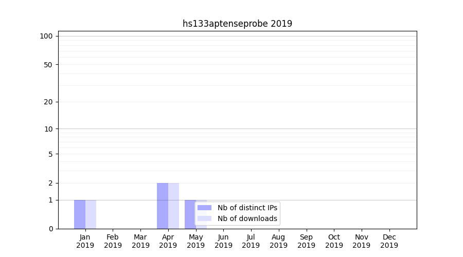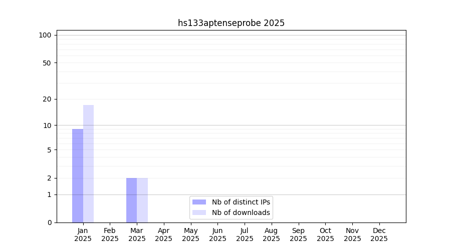 Number of downloads for annotation package hs133aptenseprobe, year by year, from 2025 back to 2014 (years with no downloads are omitted):