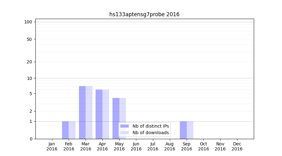Number of downloads for annotation package hs133aptensg7probe, year by year, from 2025 back to 2014 (years with no downloads are omitted):