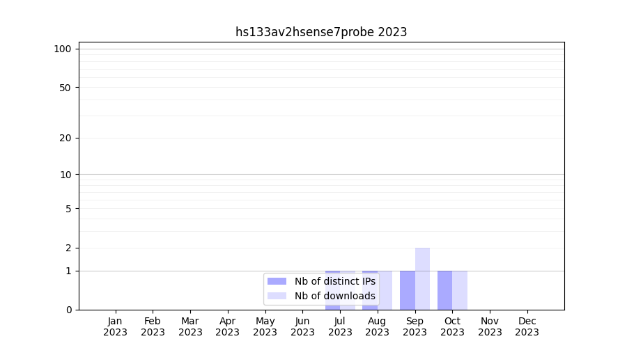 Number of downloads for annotation package hs133av2hsense7probe, year by year, from 2025 back to 2014 (years with no downloads are omitted):