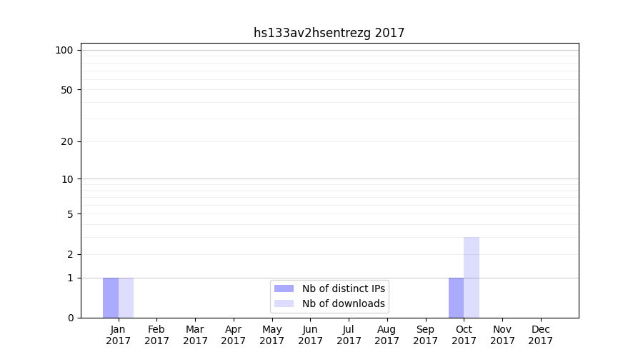 Number of downloads for annotation package hs133av2hsentrezg, year by year, from 2025 back to 2014 (years with no downloads are omitted):