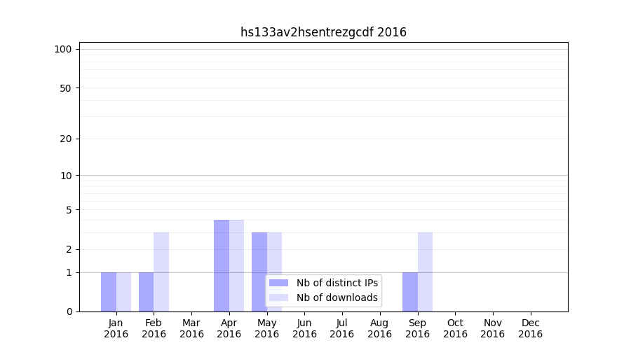 Number of downloads for annotation package hs133av2hsentrezgcdf, year by year, from 2025 back to 2014 (years with no downloads are omitted):