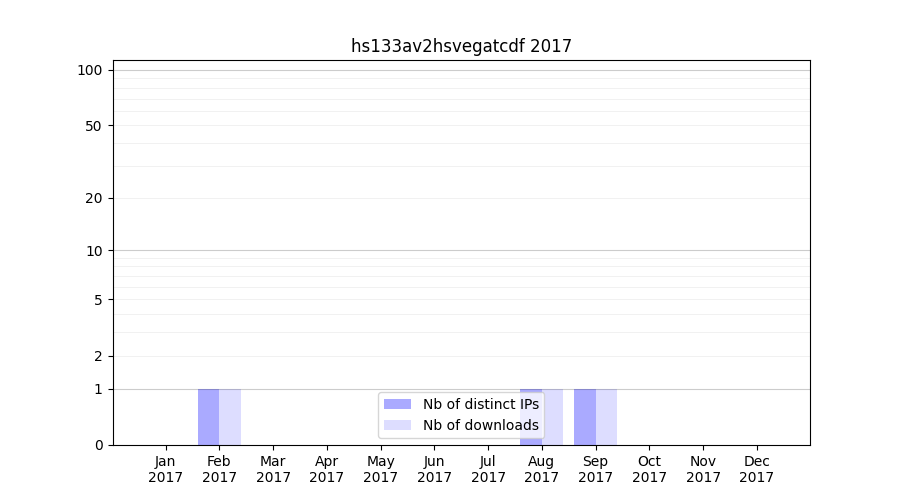 Number of downloads for annotation package hs133av2hsvegatcdf, year by year, from 2025 back to 2014 (years with no downloads are omitted):