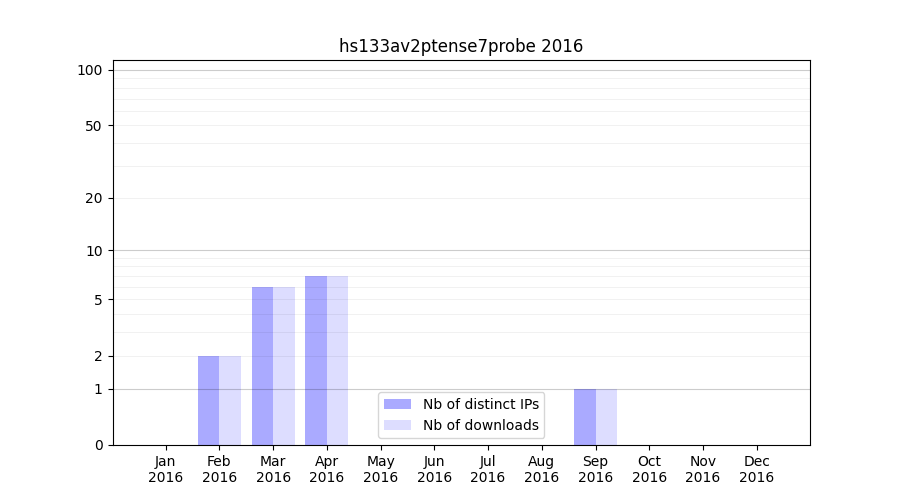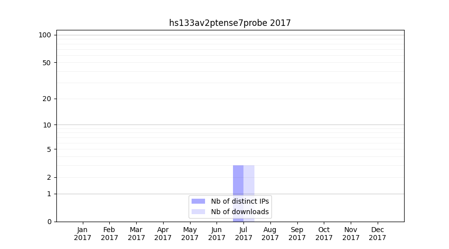 Number of downloads for annotation package hs133av2ptense7probe, year by year, from 2025 back to 2014 (years with no downloads are omitted):