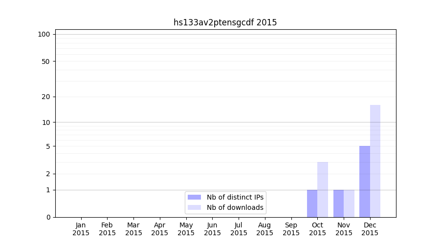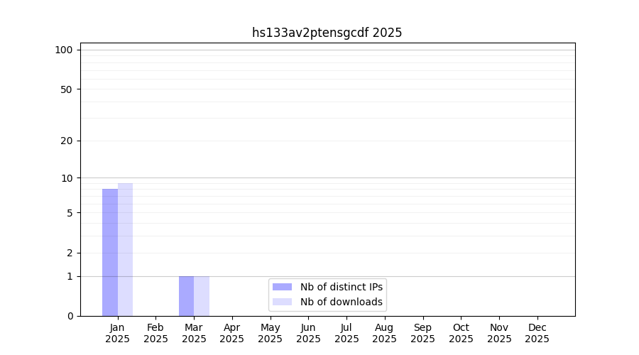 Number of downloads for annotation package hs133av2ptensgcdf, year by year, from 2025 back to 2014 (years with no downloads are omitted):