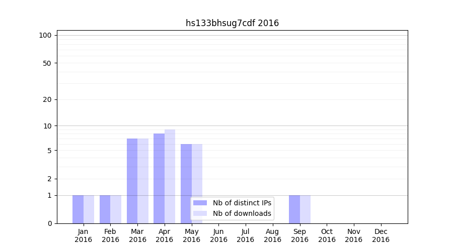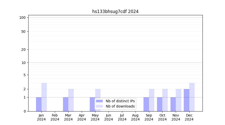 Number of downloads for annotation package hs133bhsug7cdf, year by year, from 2025 back to 2014 (years with no downloads are omitted):