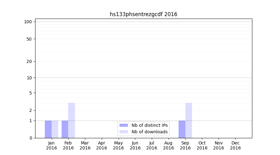 Number of downloads for annotation package hs133phsentrezgcdf, year by year, from 2025 back to 2014 (years with no downloads are omitted):