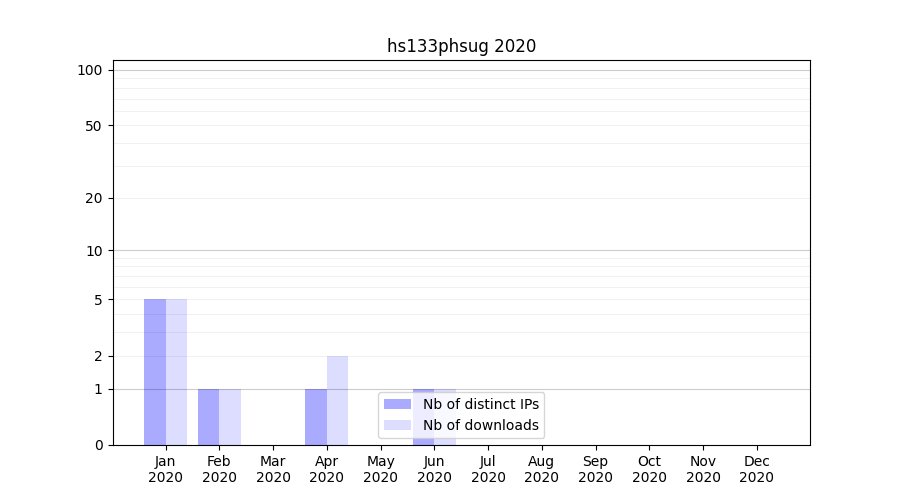 Number of downloads for annotation package hs133phsug, year by year, from 2025 back to 2014 (years with no downloads are omitted):